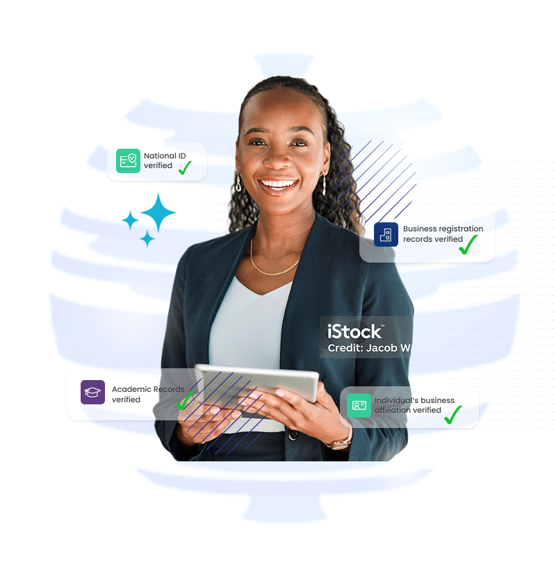 We are dedicated to revolutionizing the verification industry with our innovative solutions for verification of national ID, academic records, Individual business affiliation(s) and business registration credentials.